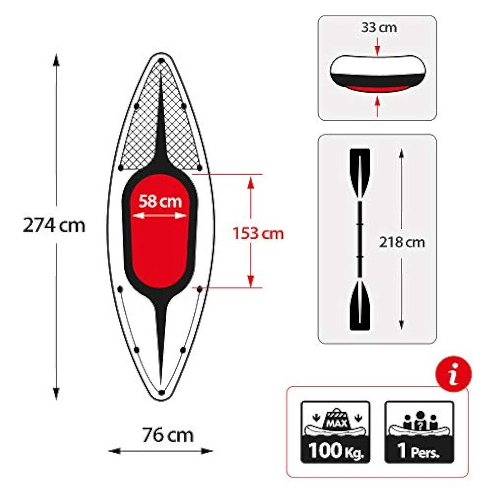 *** Características *** Ligero, kayak durable hecho de material soldado resistente con gráficos llamativos para mayor seguridad en el lago o en río de movimiento lento. La cabina está adaptada para comodidad y un espacio maximizado, y los pisos inflables I-beam dan estabilidad. Red de carga para contenedores equipo extra, y guirnalda en ambos extremos del kayak; asiento inflable con respaldo. Viene con un remo de aluminio de 84 pulgadas, parche de reparación y una bomba de mano manual de alta potencia. Medidas 30 por 15 por 108 pulgadas (Ancho x Altura x Profundidad), con 27.2 libras de peso y 220 libras de capacidad máxima. El Intex Challenger K1 Kayak es deportivo y divertido con un diseño aerodinámico para remar fácilmente. El color verde brillante y los gráficos deportivos hacen que el kayak sea muy visible en el agua. Ideal para experimentar lagos y ríos suaves en solitario, este kayak de la serie Sports es perfecto para un adulto. Ligero y compacto, este kayak es muy fácil de montar y, con la válvula Boston, se infla y desinfla en minutos. Puede divertirse haciendo kayak donde quiera que vaya. Hecho con una construcción de vinilo resistente y construido para el rendimiento, este resistente kayak tiene un piso de viga en I inflable, una plataforma de bajo perfil y cámaras laterales de alta flotabilidad para mayor estabilidad, comodidad y funcionalidad.