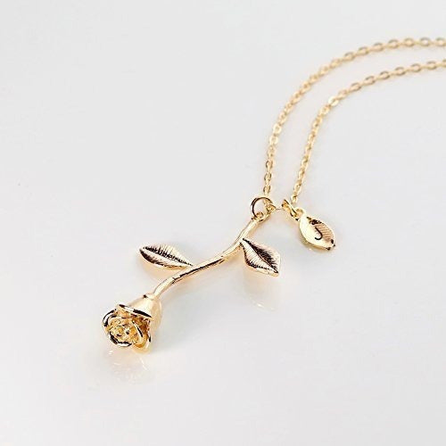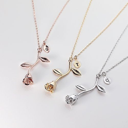 Chapado En Oro Rosa Colgante Collar Collar Inicial Dama De
