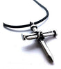 Collar de cruz de uñas antiguo El colgante de cruz de uñas de peltre antiguo hecho en EE. UU. Es de 1 pulgada x 1 1/4 pulgada Cable de caucho negro suave de 22 pulgadas con cadena extensora de 2 pulgadas El acabado de peltre antiguo sin plomo le da un aspecto resistente y elegante 3 clavos + 1 cruz = 4 dados ¡Fabricado en los Estados Unidos! - diseñado por Forgiven Jewelry (establecido en 1993)