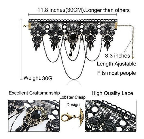 Este conjunto de joyas de mujer para Halloween es único y moderno, perfecto para Halloween, disfraces, fiesta del festival, acción de gracias, Navidad, disfraces, fiesta individual, fiesta de Buck, quinceañera, celebración de compromiso, desfile de moda, juego temático renacentista. Longitud ajustable Diseñado: longitud de encaje-11.8 pulgadas (30 cm), cadena extendida: aproximadamente 3.3 pulgadas (8.5 cm). Longitud mínima del collar: 11.8 '', longitud total máxima: 15.1 ". Se adapta a la mayoría de las personas, puede ajustar la longitud a Ajuste perfecto con la cadena de extensión. Excelente artesanía y diseño elegante: el collar de disfraces Your para Halloween está hecho de encaje de alta calidad, piedras artificiales, diamantes de imitación y aleación, sensación de uso cómodo sin alergia.Diseño de broche de langosta, muy seguro y fácil de usar. Nuestros juegos de joyas de Halloween para niñas vienen en una hermosa caja, puedes usarlos para guardar tu collar cuando no lo estés usando o también pueden ser un buen regalo para amigos, familiares y amantes.