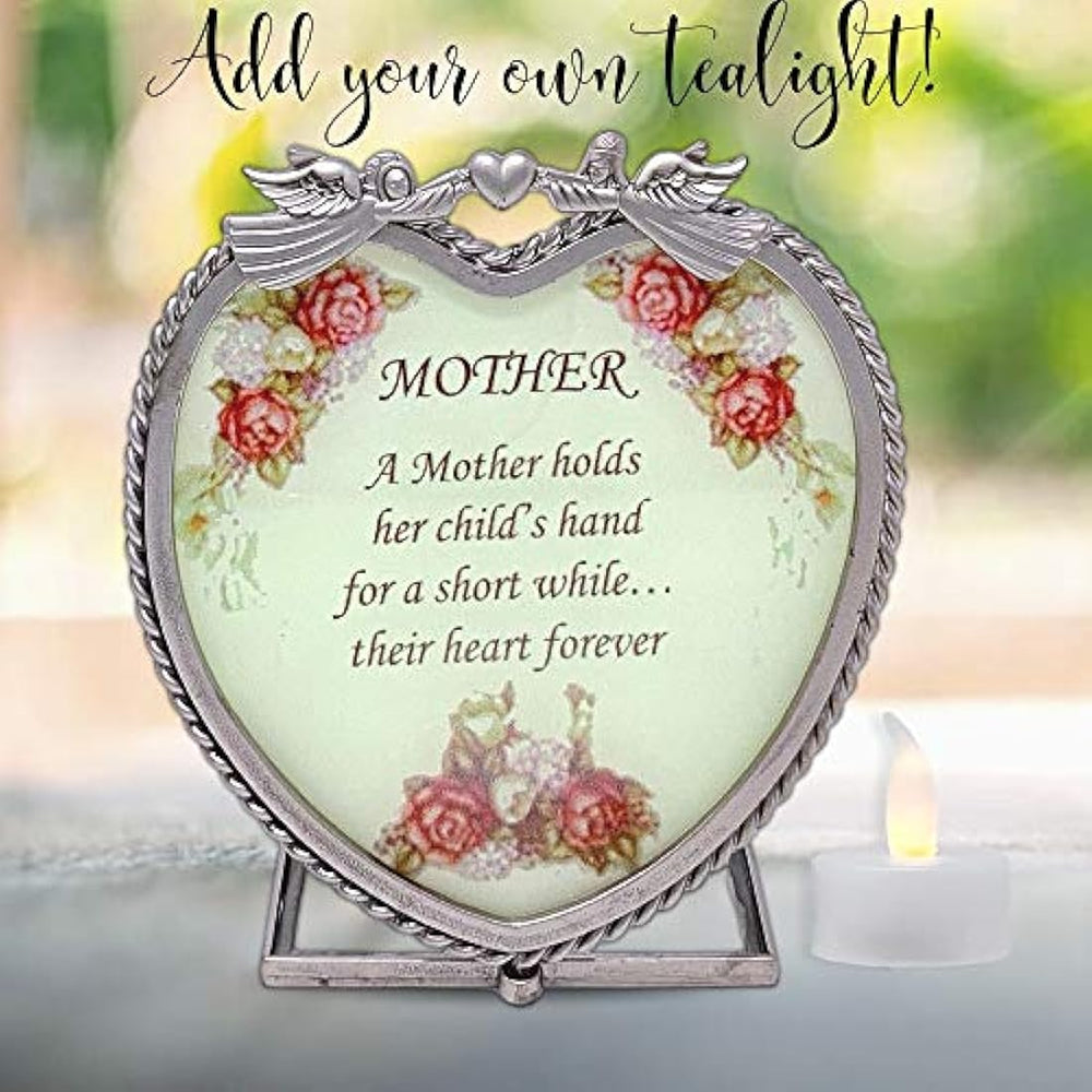 *** Características *** Ideas de regalo de Día de la madre, y este hermoso vidrio) es el regalo perfecto para el día de la madre. Mostrar mamá cuánto te encanta su cariño con este conmovedor madre diciendo. cualquier mamá que este regalo. Dar este a mamá en su día de cumpleaños, regalo de Navidad, gracias, regalos para madre, regalos de madre de la novia, mamá a ser, madre en el derecho de valoración, abuela o esposa. Mamá poema. 'mensaje en inglés "una madre mantiene la mano de su hijo durante un tiempo ... su corazón para siempre" Este es un maravilloso diciendo para su madre. cualquier mamá se muestre con orgullo en una estante, reloj de mesa, encimera, mesita de noche, putadora o ventana regalo bonito para una hija a dar a su madre. Regalos de cumpleaños para mamá. mamá les encantará este soporte para vela de té para su cumpleaños este año. puede usar una vela de té o vela votiva Tamaño Vela en este juego de soporte para vela. detrás del corazón sobre la base de vidrio y reloj de la madre diciendo vienen a la vida. Te quiero, mamá. soporte para vela (vela no incluida) medidas 3 "x 4" x 4 "y el metal es acabado en un color estaño antiguo. rosas y hojas Surround de las palabras de amor para mamá. Regalos para ella. dar este a su mamá, hermana, madre en el derecho, madre, abuela a ser, madre de la novia, madrina, abuela, esposa, hija. tía cualquier mujer encantaría recibir este mensaje de corazón Portavelas o un regalo este día de la madre. Sentimientos sinceros Soporte para Vela con mensaje que brilla cuando se ilumina y vibrante desde detrás con una pequeña vela de té. Mensaje "una madre sostiene su mano para un corto del niño mientras ... Su Corazón para siempre".