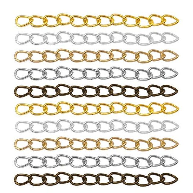 El paquete incluye: 250 extensores de cadena de pulsera, 5 colores en total, son oro, oro KC, plata, blanco K, verde oscuro, 50 unidades por color, su tamaño es de 2.0 in x 0.157 in. Ideal para hacer collares, pulseras, tobilleras, llaveros, etc. Material duradero: la cadena extensora de acero inoxidable es sólida y duradera. Hecha de aleación de zinc que no contiene plomo ni níquel, múltiples colores para satisfacer tus diferentes necesidades para tus proyectos de manualidades. Amplia aplicación: estos extensores son adecuados para ampliar la longitud de collares, pulseras, llaveros o tobilleras, etc., bueno para colgar colgantes, piedras, incluso puedes hacer pendientes colgantes, puedes elegir el color adecuado para satisfacer tus necesidades de joyería.