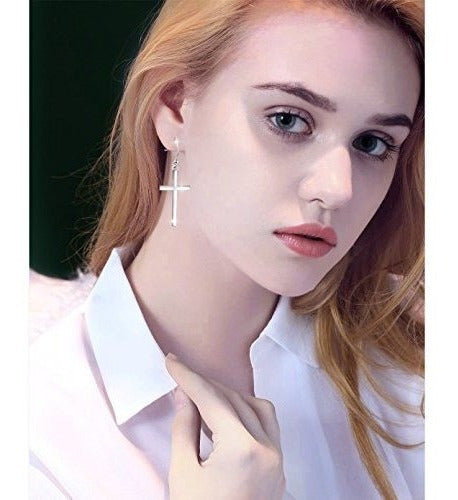 S925 Joyas De Plata Esterlina Pendientes Colgantes Cruzados