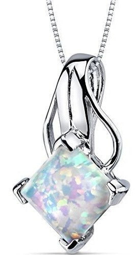 Collar Colgante De Ópalo Creado Corte De Princesa De Plata