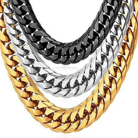 U7 Hombres Hip Hop Chunky Cadena De Acero Inoxidable / negro