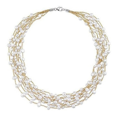 Pavoi Collar De Perlas De Concha Simulada De Plata Esterlina