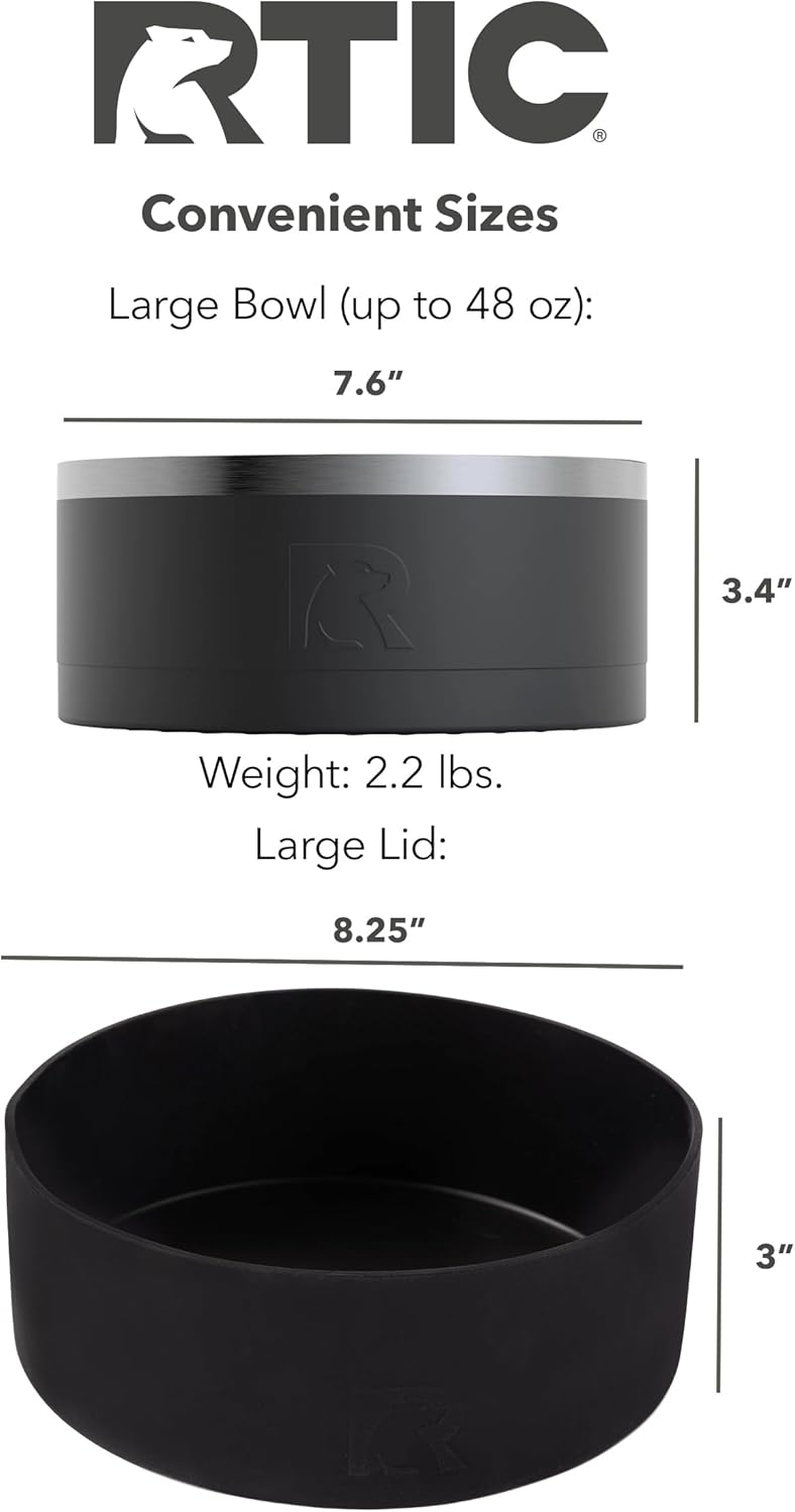 Bowl para perros RTIC, acero inoxidable, portátil y Negro