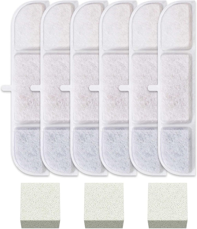Color Blanco DownyPaws Dimensiones del artículo LxWxH 6.67 x 1.57 x 0.4 pulgadas Especies objetivo Cat Sobre este artículo Fuente de gato atible: los filtros de repuesto solo son atibles con la fuente de agua DownyPaws DPWFP6. En la caja: el paquete incluye 6 paquetes de filtros de repuesto y 3 paquetes de esponja prefiltro de repuesto. Todo para la salud de tu mascota: cada gota de agua se filtra a través de filtración multicapa para eliminar todas las impurezas y proporcionar agua enriquecida con oxígeno y de mejor sabor. Sistema de filtración de 5 niveles: 1. El carbón activado elimina el mal sabor y el olor. 2. La resina de intercambio de iones puede suavizar el agua del grifo. 3. La piedra médica elimina metales pesados y libera oligoelementos. 4. La tela no tejida puede filtrar el cabello y las impurezas. 5. La esponja prefiltro de la bomba ayuda a eliminar partículas finas. Para un uso óptimo: remoja el filtro durante 5 minutos y enjuaga durante 30 segundos antes de su uso. Para mantener el efecto de filtr se r enda reempl los filtros cada 2 semanas. Si tienes varias masco se r enda limpiar la fuente y cambiar el filtro más a menudo.