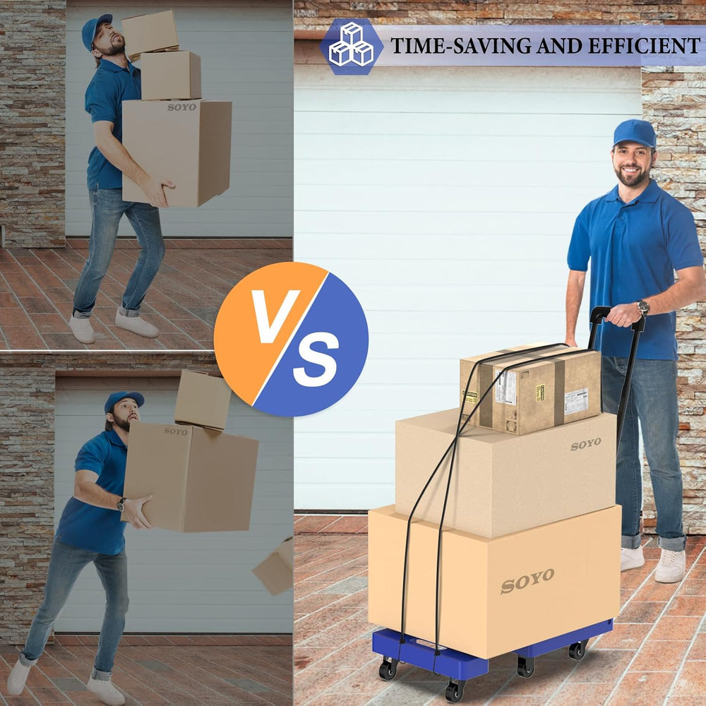 Carretilla Plegable SOYO, 500lbs, 6 Ruedas, 2 Cuerdas Elásticas