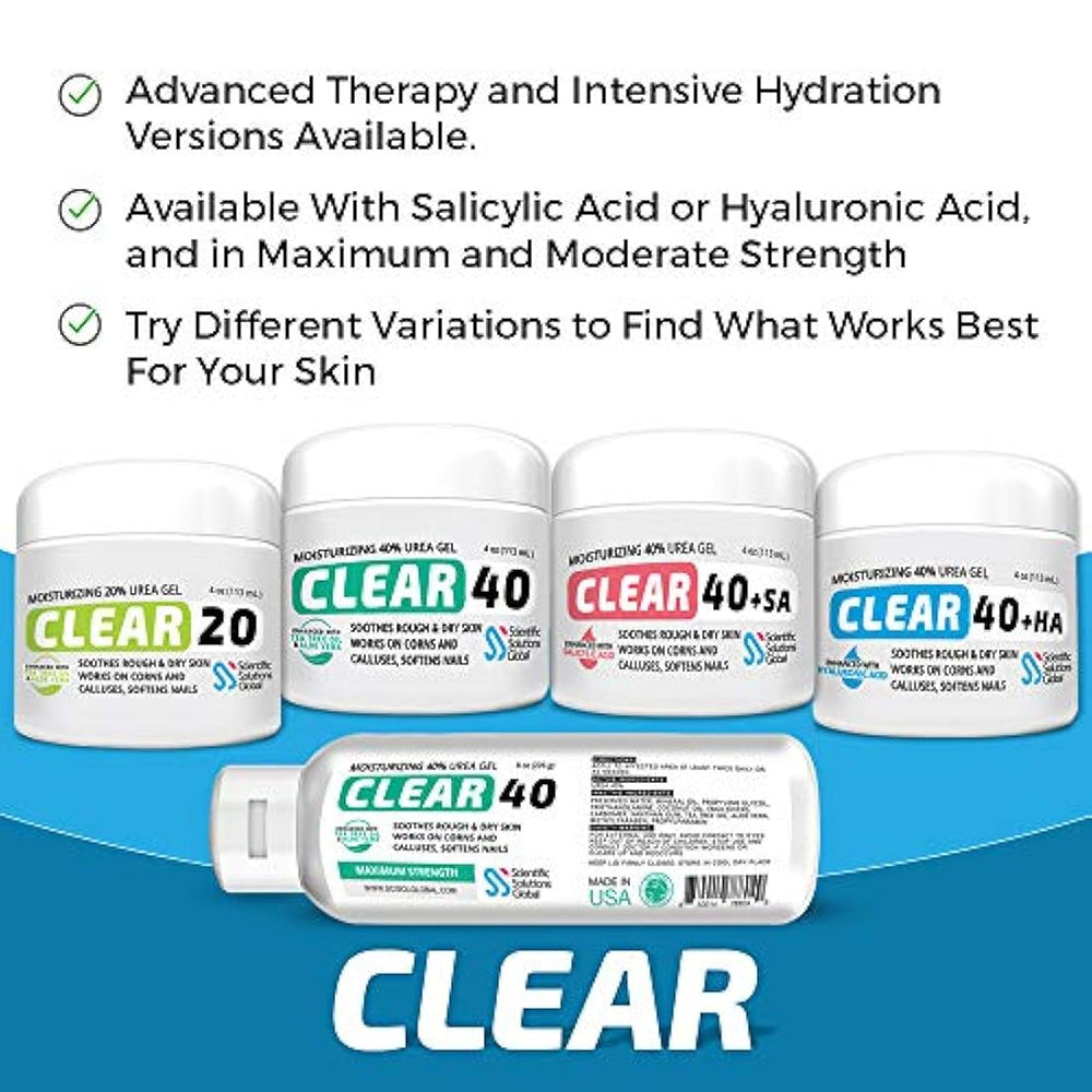 Clear 40, 40% Urea Gel, 4 oz con árbol de té y aceite de coco, extracto de aloe vera, removedor de callos y maíz, hidrata y suaviza los talones agrietados, pies, codos, manos, uñas, rehidrata la piel mejor que las cremas.