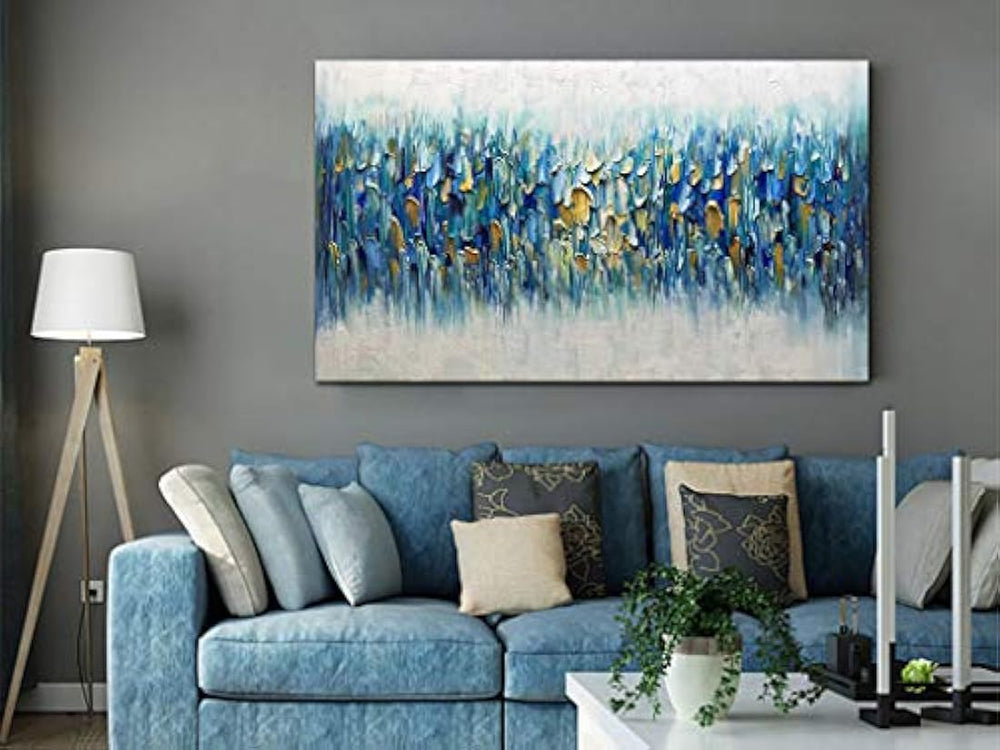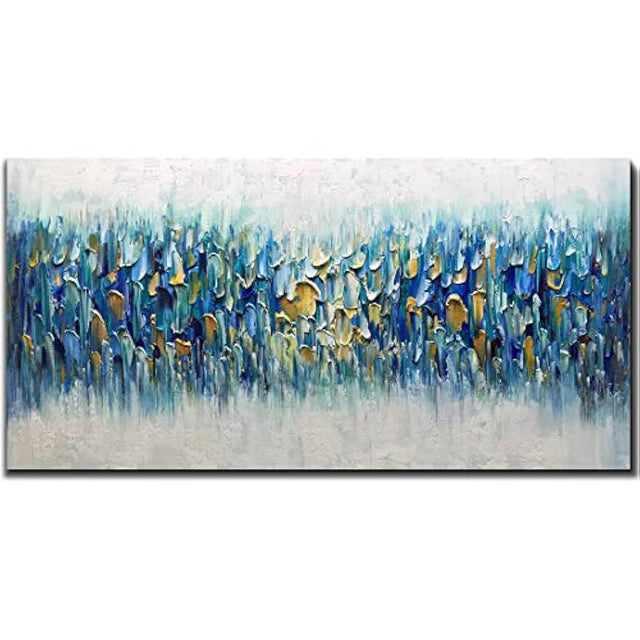 *** Características *** Tamaño de las pinturas al óleo: 24 * 48 pulgadas (60x120 cm) Alta calidad: pinturas de espátula gruesas. Una pieza de pared realmente agradable para agregar un toque de color a su habitación. 100% pintado a mano. Embalado en caja de cartón impreso "Amei". Conveniente: Lienzo pintando con marcos interiores, cada panel tiene un gancho negro ya montado en la barra de madera para colgarlo fácilmente de la caja, los bordes también están pintados para asegurar el efecto artístico perfecto. Bueno para regalo: un arte de pared perfecto para sala de estar, dormitorio, cocina , oficina, hotel, edor, baño, bar, etc. Un gran regalo para sus amigos o familiares que disfrutan decorando sus hogares. La pintura real puede ser ligeramente diferente de la imagen del producto debido a las diferentes marcas de monitores, consulte los colores se muestra en la foto. Tipo de marco de ilustraciones: --- Estirado y enmarcado    Orientación de arte de pared: ---Paisaje    Color del arte de la pared incluido: --- Multicolor, color oro azul blanco texturizado    Tema / estilo de la obra de arte: --- Arte contemporáneo moderno abstracto    Paquete incluido: --- Pinturas al óleo abstractas en blanco y azul dorado 3D * 1 pieza por juego   Acerca de Calidad: - Todas las pinturas al óleo están pintadas a mano por nuestros artistas, siempre se controlan cuidadosamente por un control de calidad profesional antes del envío.   Sobre el paquete: --Todas las pinturas que vendemos están enmarcadas y estiradas, todos los marcos se toman en un control de calidad bastante serio. Todas las pinturas están protegidas en las esquinas con cartón, film retráctil envuelto y embalado en una caja de cartón para garantizar su seguridad durante el envío. - Todas las pinturas están cuidadosamente embaladas en un paquete estándar para evitar daños durante el envío.   Si tiene algún motivo por el que no está satisfecho con algún producto de Amei Art, no dude en ponerse en contacto con nosotros primero y haremos todo lo posible para resolver su problema lo antes posible.   Nota: 1.Debido a los diferentes efectos de iluminación entre los monitores de la putadora, el teléfono celular, el color de los objetos será un poco diferente al de las imágenes mostradas.Gracias por su amable prensión, verifique que el tamaño sea el tamaño correcto que desea al realizar el pedido. 2.Puede haber una diferencia de 1-2 cm debido a la medición manual. (1 cm = 0.39 pulgadas)