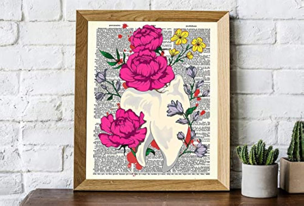cartel de decoración de diente con flores sin marco está agotado y se enviará tan pronto como vuelva a estar disponible.
