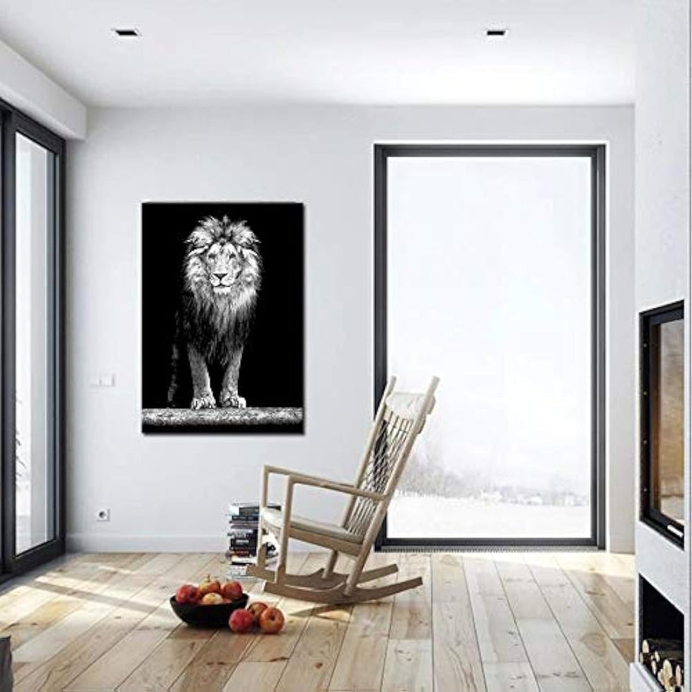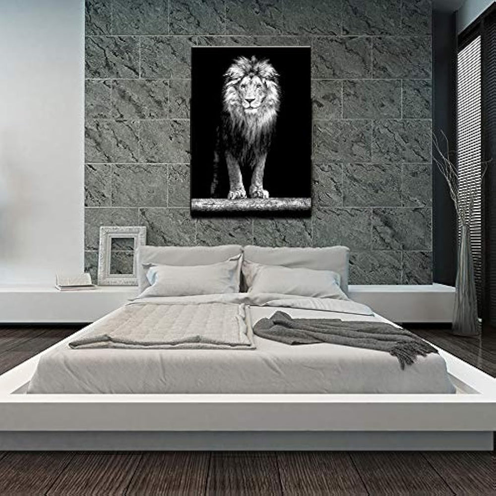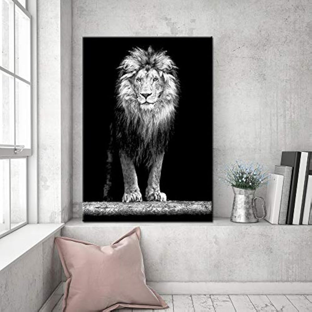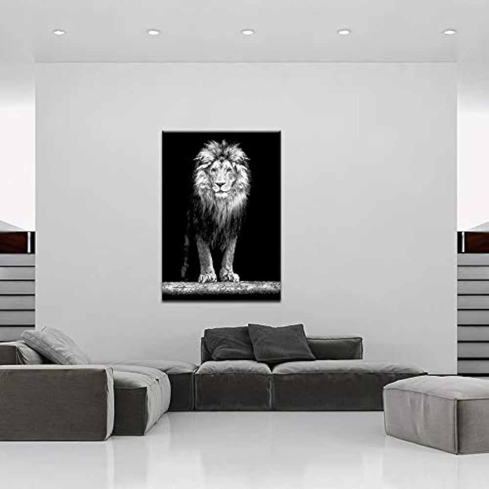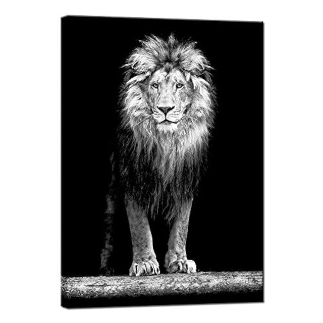 LevvArts - Lienzo impreso de retrato de León blanco y negro
