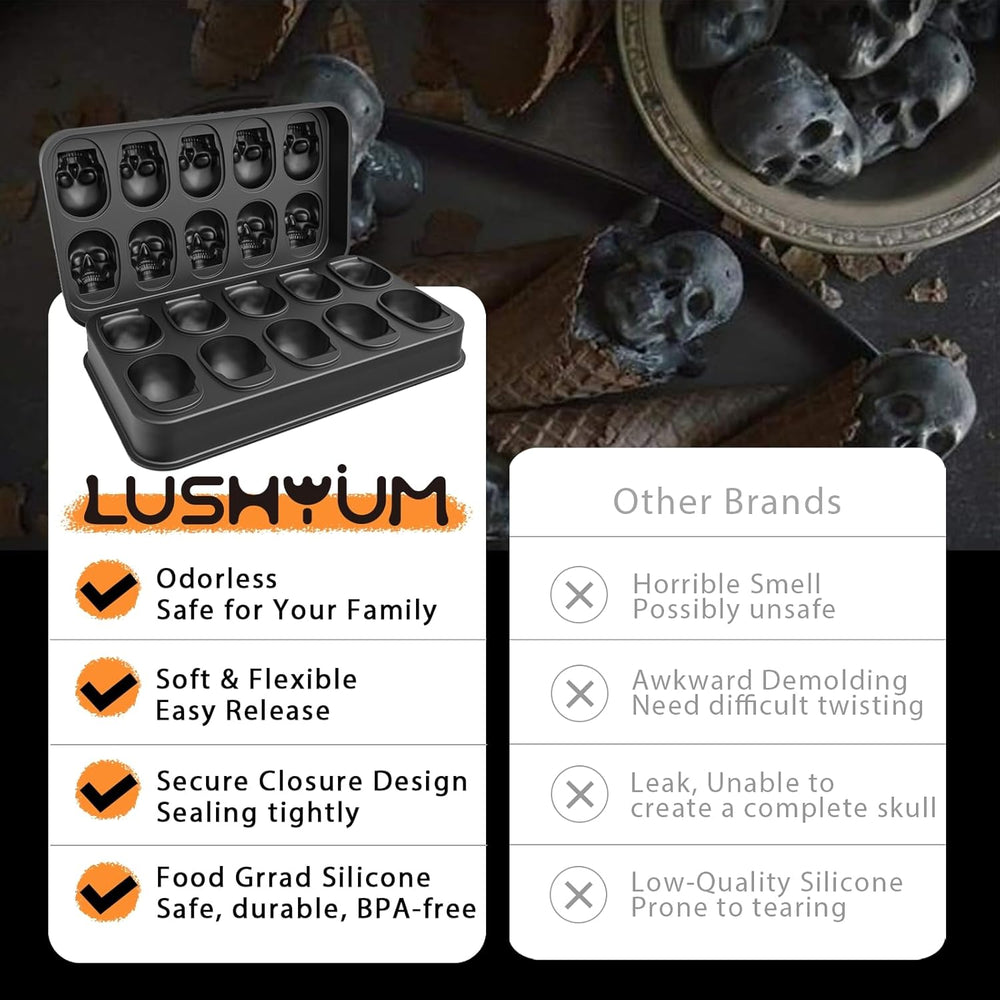 Molde de Hielo Calavera 3D, BPA-Free, 10 Cavidades, Halloween