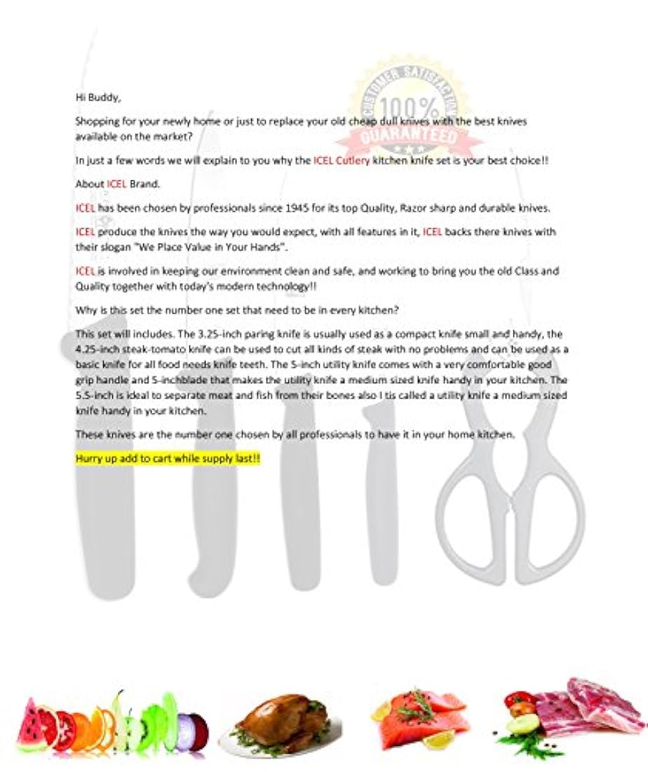 Icel All cuchillo de pelar, cuchillo de filete/tomate,