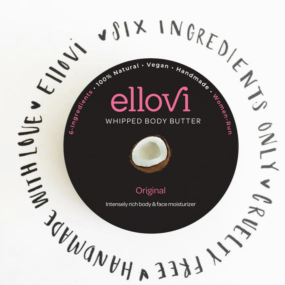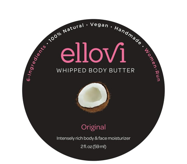 About this item FULL SIZE (Original): 2 fl. oz (59ml) Whipped Body Butter ONLY 6 NATURAL INGREDIENTS: Macadamia Butter (Omega Shea But Arrowroot Pow Coconu Hemp Seed Oi an Marula Oil (Omega- Vitami C). USES: All over deeply moisturizing but facial b makeup remo massag bab belly b deep conditioner for hair and healing balm. NOURISHING BODY BUTTER BENEFITS: Skin rejuvenat reduces appearance of sc redn and irritation. Soothing for skin conditions. VE ETHICALLY SOURCED: Fragrance is derived through pure therapeutic-grade essential oils and cold-pressed extractions. PROMISE FREE: No toxic ingredie non- gluten-f eco-frien cruelty-f 100 concentrated with rich plant-based oils with no fill synthet water or preservatives. Small batch and handcrafted with love. Mantequillas batidas elevan su absorción creando una sensación de lujo y liger derritiéndose rápidamente al tocar la piel para una hidratación máxima. Experimenta el limpio y ligeramente vigorizante aroma de esta mantequilla esponjosa y no gras perfecta para uso diario. Ellovi Butter es un hidratante de 6 ingredientes tan puro que podrías értelo. Lo especial de Butter es que no añadimos agua. Eso significa que es altamente concentr no puede evaporarse o otros hidratan y no necesitamos conservantes. Butter se absorbe profundamente e hidrata tu piel mejor desde adentro hacia afuera. Incluso después de lavarte las manos o baña Butter mantendrá tu piel intensamente hidratada y nutrida por días. Ellovi creó Butter porque otras cremas corporales y hidratantes están llenas de químicos innecesar parabenos y conservantes creados en laboratorios científicos. Tu piel es o una esponja giga así que debes protegerla de absorber cosas dañinas. Ingredientes: Mantequilla de Macadamia (Omega Manteca de Kar Aceite de de Arrur Aceite de Joj Aceite Esencial de Naranja.