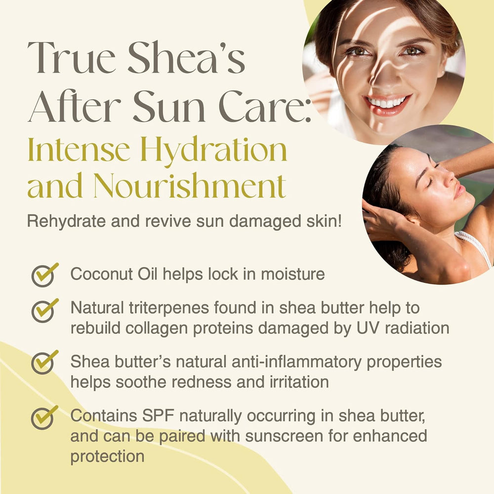About this item Say Goodbye to Dry Cracked Skin - The “New Softer formula an rich consistency of our whipped shea butter sets it apart from other body oils or body lotions. Made with high concentrations of African shea but our whipped body butter calm an shields your skin while nourishing it deeply. Deeply Moisturizes Your Skin - True Shea body butter harnesses the nutritive powers of unrefined shea but which is also used as a shea butter soap base in shea butter soap and in making shea butter lip balm. Regular use of our whipped shea butter helps address damage while keeping your skin supple. Flaunt Heal Beautiful Skin - Keep your skin gorgeous by nurturing it with our whipped body butter for wome an men. With raw African shea butter as its b this alternative to a body lotio s clear skin while helping remove excess sebum. Benefits Your Skin’s Ability to Produce Collagen - Rather than using hard raw shea butter or plain coconut o indulge in True Shea body butter which contains both in a smo creamy formula! Using unrefined instead of refined shea butter provides more benef including assistance in repairing damaged collagen fibers. Works Great with Any Skin Type - Using dried tree nuts in our whipped shea butter for skin lowers its prote which may cause irritations. Made with no parab phthala propyl minera gl an sulfa our shea butter cream benefits no an sensitive skin. SOBRE ESTE PRODUCTO - Adiós a la piel seca y agrietada - Hidratación profunda para tu piel - Piel sana y hermosa - Estimula la producción de colágeno - Apto para todo tipo de piel