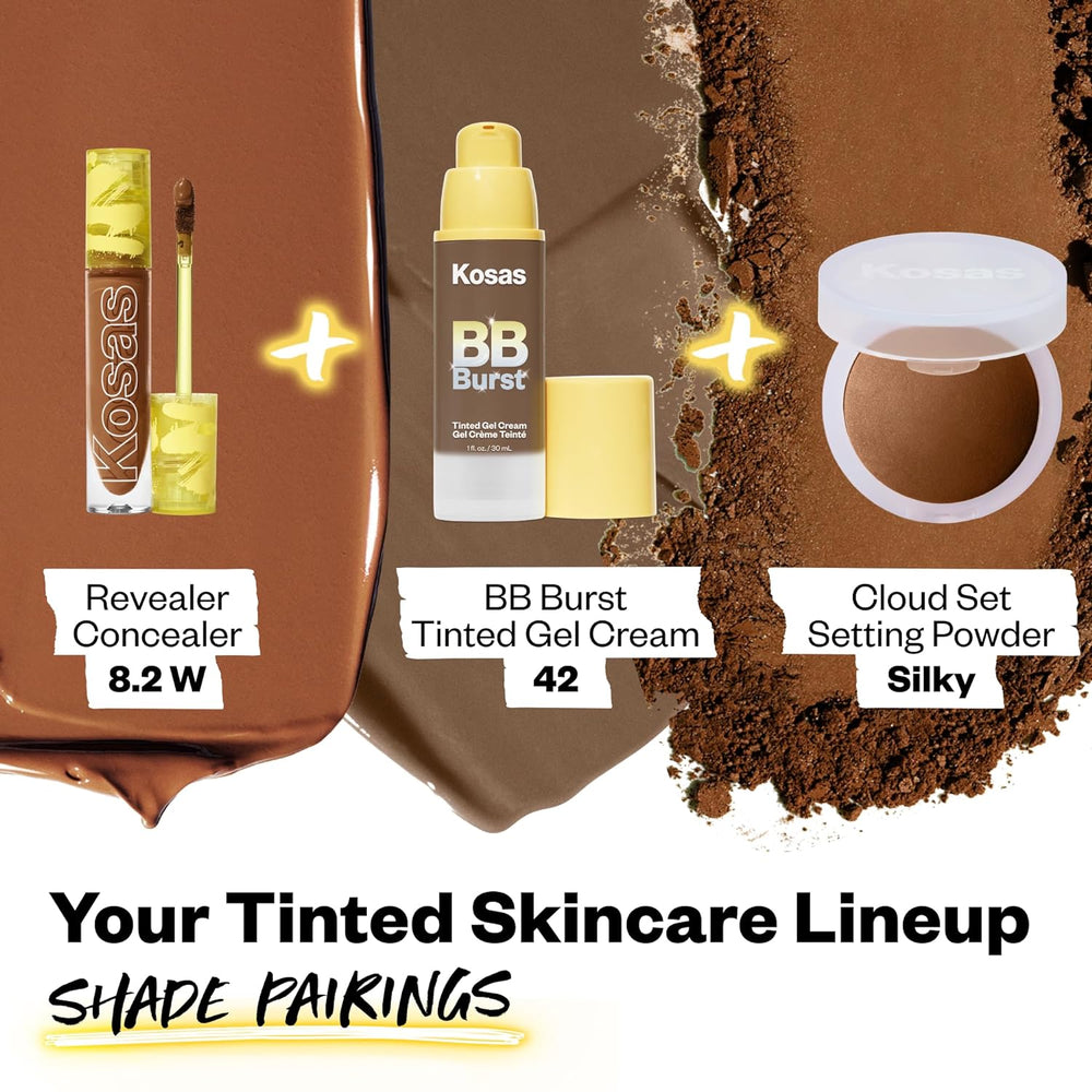 Sobre este artículo Explosión hidratante de cuidado activo de la piel: nuestra crema de gel tintada Kosas BB Burst está impregnada con potentes ingredientes para el cuidado de la piel o péptidos de co óxido de z isomerato de sacárido y PCA de so para hidratar profundamente tu piel mientras apoya la producción saludable de colág calma la sensibilidad y suaviza tu piel. Aspecto fresco y vibrante: la fórmula refrescante libera una explosión de ingredientes activos para el cuidado de la piel que revitaliza instantáneamente tu cu dándote un acabado suave y fresco que dura todo el día. Cobertura ligera y construida: el equilibrio perfecto de cobertura y acabado natural. La fórmula ligera te permite aumentar la cobertura al nivel deseado sin sentirte pesado o pegajoso. Piel radiante y saludable: con cada aplicación de nuestra crema de gel tintada BB Bu experimentarás una potente hidratac dejando tu piel fresca e hidratada. Resultados reales: estamos prometidos a crear productos de belleza limp sin silic vega sin gluten y sin crueldad que ofrezcan resultados reales sin prometer la calidad o el rendimiento. Una nueva versión de la crema hidratante teñida que ofrece una cobertura ligera y edificable y un acabado su hidratado y natural. Infundida con un cuidado activo de la piel o péptidos de co óxido de z isomerato de sacárido y PCA de so esta crema de gel tintada no solo mejora tu cutis al insta sino que también mejora tu piel con el tiempo. Los péptidos de cobre apoyan el colágeno saludable para una piel visiblemente más voluminosa y fi mientras que el óxido de zinc alivia la sensibilidad y ayuda a reducir el enrojecimiento. El isomerato de sacárido suaviza y apoya la barrera cutá mientras que Sodium PCA hidrata y bloquea la humedad. BB Burst es una fusión fresca de tinte de p crema hidratante teñida y b dejando un acabado vibrante y fresco. Libre de silic veg sin gluten y libre de cruel este producto también está libre de aceite mine fragan parabe sulfatos y ftalatos.
