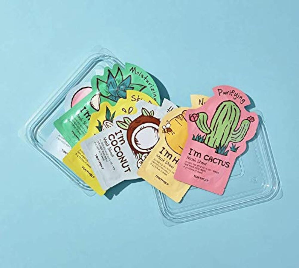 El juego incluye: I'm Cactus Sheet Mask - 1000 ppm de extracto natural de tuna que calma, calma, purifica e hidrata la piel, dejando un cutis limpio y saludable. I'm Honey Sheet Mask - La esencia de agua con infusión de miel proporciona hidratación y alimento para una piel radiante. I'm Green Tea Sheet Mask: la esencia acuosa de té verde refresca, ilumina y purifica la piel. I'm Aloe Sheet Mask: el extracto de aloe y la esencia a base de agua proporcionan la máxima hidratación para la piel. I'm Peach Sheet Mask: el extracto natural de melocotón revive la piel apagada para un cutis saludable. I'm Coconut Sheet Mask: vitamina E y extracto de coco que eliminan la suciedad y revitalizan la piel.