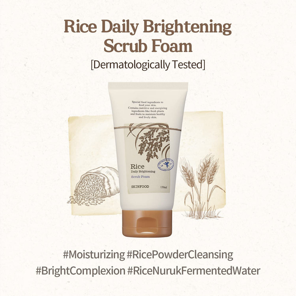 Acerca de este artículo Exfoliante facial: una espuma exfoliante facial coreana microfina hecha con agua de salvado de arroz de la prístina región de Cheorwon que limpia y exfolia. Este exfoliante facial de belleza coreano eliminará la piel apagada y s dejando una piel suave y renovada. Beneficios del arroz: se sabe que el arroz proporciona nutrientes y minerales a la p además de ofrecer los ingredientes esenciales para una piel rejuvenecida. Este exfoliante facial hipoalergénico de salvado de arroz es perfecto para pieles sensibles y se y te dejará sintiéndote fresco y limpio todo el día. SKINFOOD Scrub: este exfoliante facial lavable es perfecto par con piel normal a s o para aquellos que buscan iluminar la piel apag áspera y sin brillo. Puedes lavarte la cara con una preparación casera de agua de arroz o ahorrar tiempo y esfuerzo con la línea de limpieza de arroz de SKINFOOD. Cómo utilizar: simplemente aplique sobre la piel humedecida o mojada y aplique uniformemente en todo el rostro. Haga espuma y frote suavemente por todo el ros antes de enjuagar bien con agua tibia o tibia. Este proceso reducirá los poros dilatados y las manchas oscu dejando la piel hidratada y limpia. Auténticos productos de belleza coreanos: los productos de belleza coreanos SKINFOOD lideran el mundo con sus productos de belleza y maquillaje de primer nivel. Somos la primera de basada en los alimentos desde 1 ya que creemos que los alimentos nutritivos de la más alta calidad dan resultado una piel sana y hermosa para crear un estilo de vida más saludable. ACERCA DE ESTE PRODUCTO - Exfoliante facial hecho con agua de salvado de arroz de la región de Cheorwon que limpia y exfolia la piel. - Beneficios del arroz para nutrir y rejuvenecer la piel. - Ideal para pieles sensibles y se deja la piel suave y revitalizada. - Perfecto para pieles normales a se ayuda a iluminar la piel opaca y áspera. - Modo de uso: aplicar sobre la piel húm masajear suavemente y enjuagar. - Productos de belleza coreanos auténticos de SKINF líderes en el mundo de la belleza desde 1957.