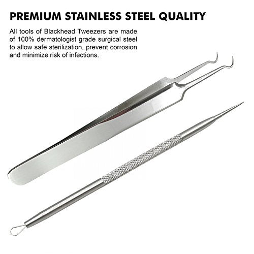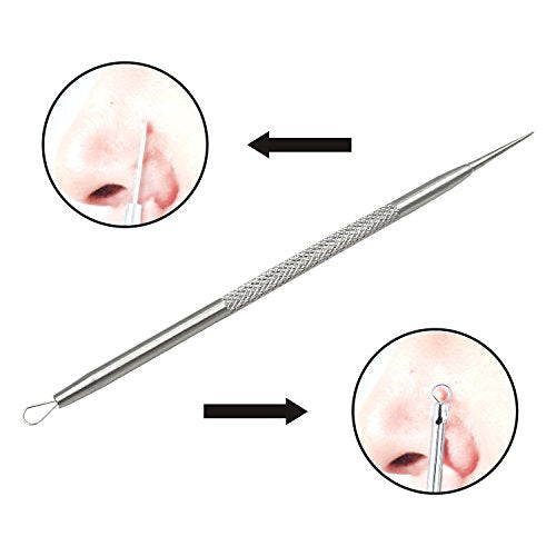 Herramientas para remover espinillas y espinillas - Acero inoxidable Profesionalmente curar espinillas Espinillas blancas edones Acné Zit Pelos encarnados e impurezas faciales Kit quirúrgico Pinzas de cabeza curva.