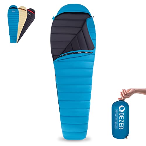 QEZER Saco de dormir ultraligero de plumón para adultos