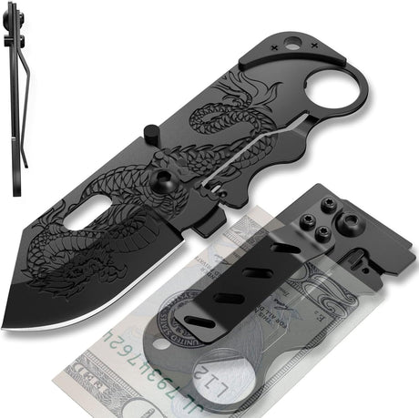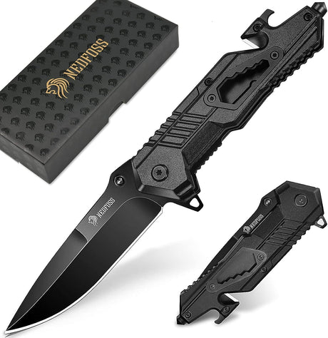 Cuchillo plegable de bolsillo EDC 5 en 1 para hombres, negro