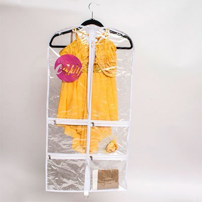 Bolsa de ropa para disfraz con bolsillos, ribete blanco