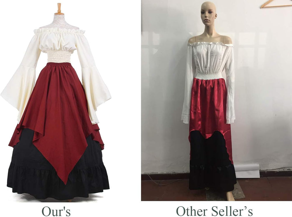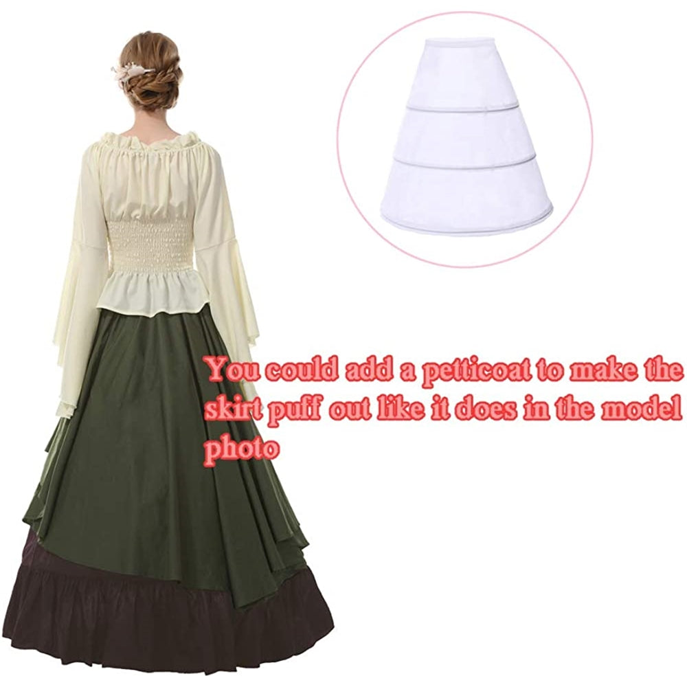 Buena mano de obra: el material de la falda de doble capa es gru pesado y duradero. La camisa tiene un tacto sedoso y es principalmente opaca. Es lo suficientemente grueso para que puedas llevar una camiseta ligera debajo de ella y no se transparenta Piezas básicas para Ren Faire: hermosa inación de colores: parte superior crema victoriana y falda renacentista de color oscuro. Esta es una gran base para cualquier mujer que esté buscando las piezas básicas renacentistas. Puedes añadir varias piezas diferentes: cor cinturo cha etc. se pueden añadir para representar diferentes épocas y lugares en el mundo La parte superior y la falda vienen en piezas separadas: hace que el vestido campesino sea más versátil. La blusa clásica se puede llevar con falda steamp gót retro o jeans Ya no te preocupes por el tamaño: parte superior campesina fruncida con hombros descubier la cintura de este tipo de falda media es elástica. Es favorecedor en casi cualquier forma de cuerpo Fácil de lavar: la tela está un poco arrugada debido a la parte superior de g y se puede planchar antes de ir a Ren F Hallow fiesta. Lavar a máquina en f ciclo su colgar para se planchar caliente