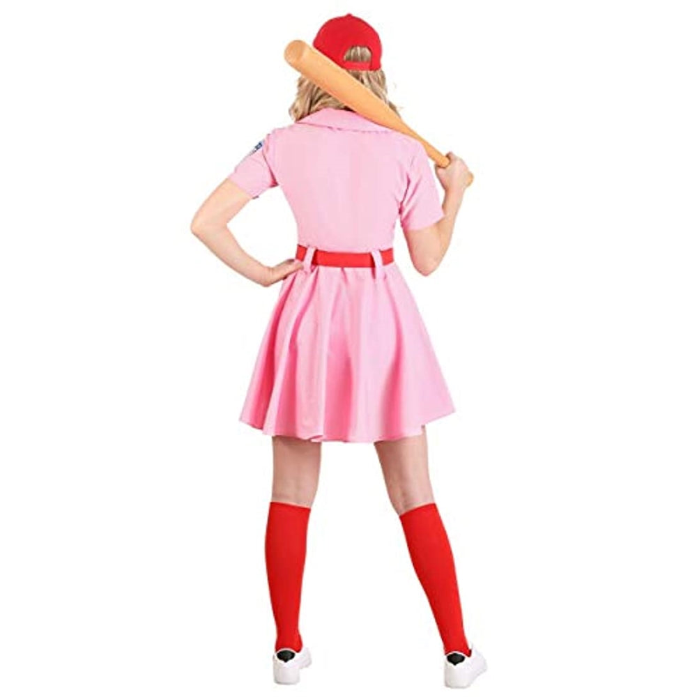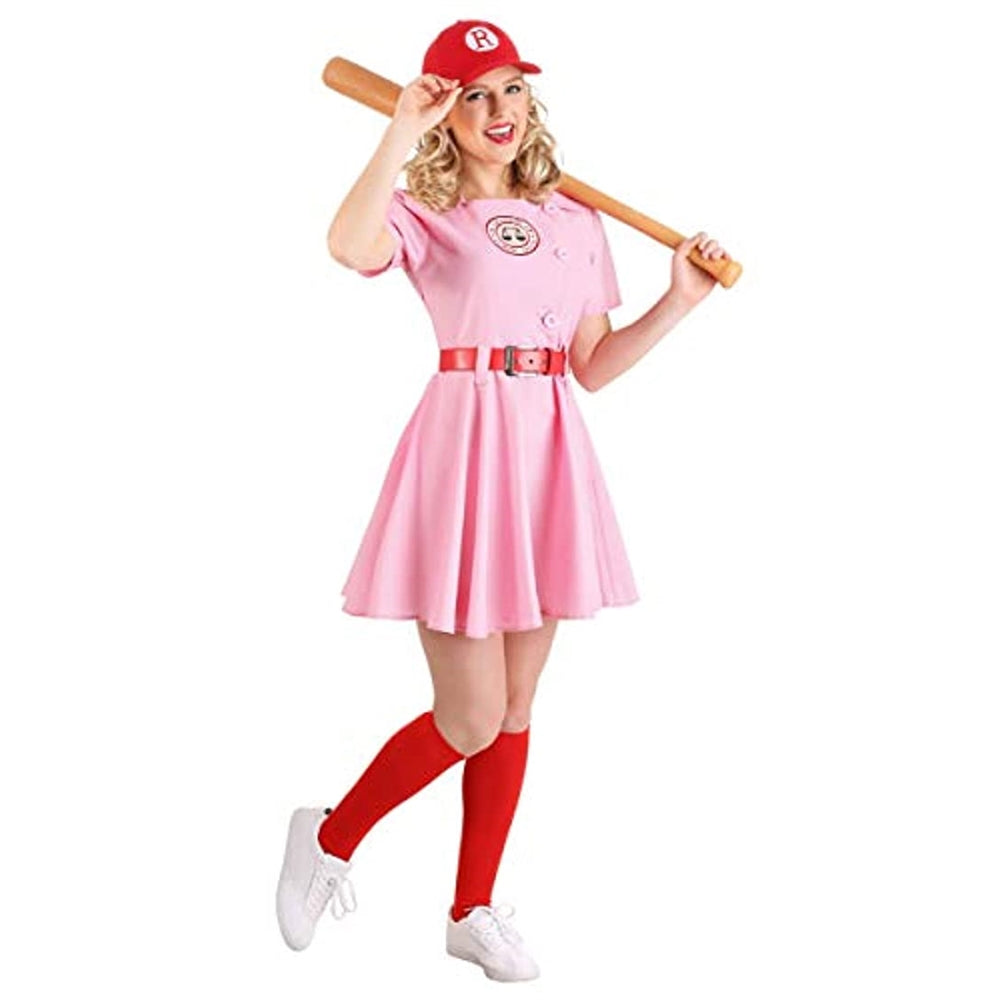 Tamaño: XS El disfraz incluye: este disfraz de uniforme de Rockford Peaches viene con un vestido de uniforme de béisbol r una gorra roja bordada y un cinturón de vinilo rojo.