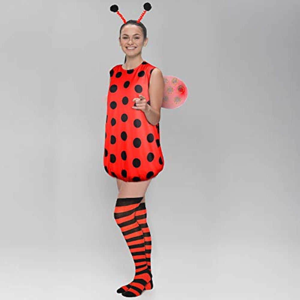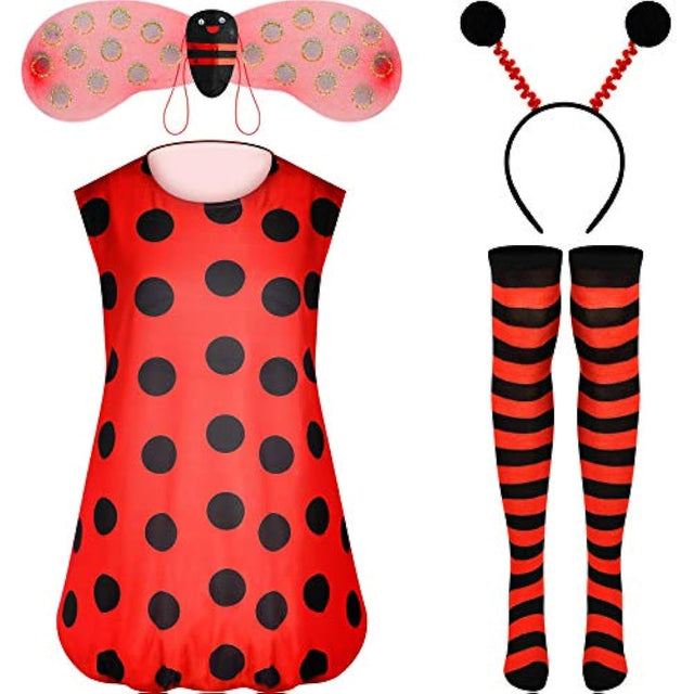 Juego de disfraz de mariquita: el paquete viene con 1 vestido de mariquita rojo con patrones de puntos neg 1 mariqu 1 diadema con pom y 1 par de calcetines a rayas rojas y neg una inación leta que te proporcionará interesantes opciones de juego de rol