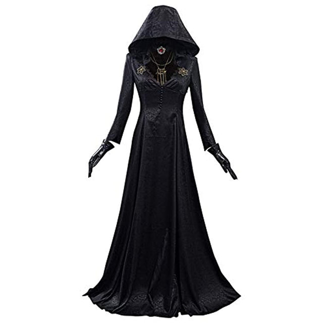 Importado Vestido de dama vampiro de la hija de Lady Dimitrescu Material: tela elástica satén elástico El paquete incluye: abrigo vestido banda para el cuello collar pegatina de tatuaje