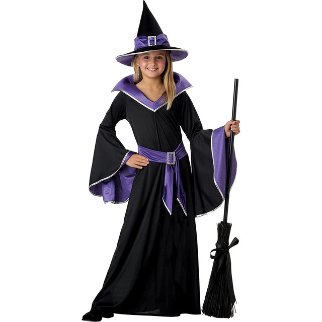 Detalles del producto Tipo de tejido100 poliéster Instrucciones de cuidado del materialLavar a mano. Agua fría. No torcer. Secar en tendedero. No usar blanqueador. País de origenVietnam Acerca de este artículo Además de un característico sombrero de bruja puntiagudo con un broche Incluye una túnica larga morada y negra Descripción ¡Muestra a todo el mundo el glamur que tiene la bruja malvada en este disfraz infantil de bruja glamurosa! Cuando se agregan nuestros zapatos de bruja malvada de ni una escoba de bruja y un cald estará preparada para la magia de Halloween. Incluye vestido y gorro