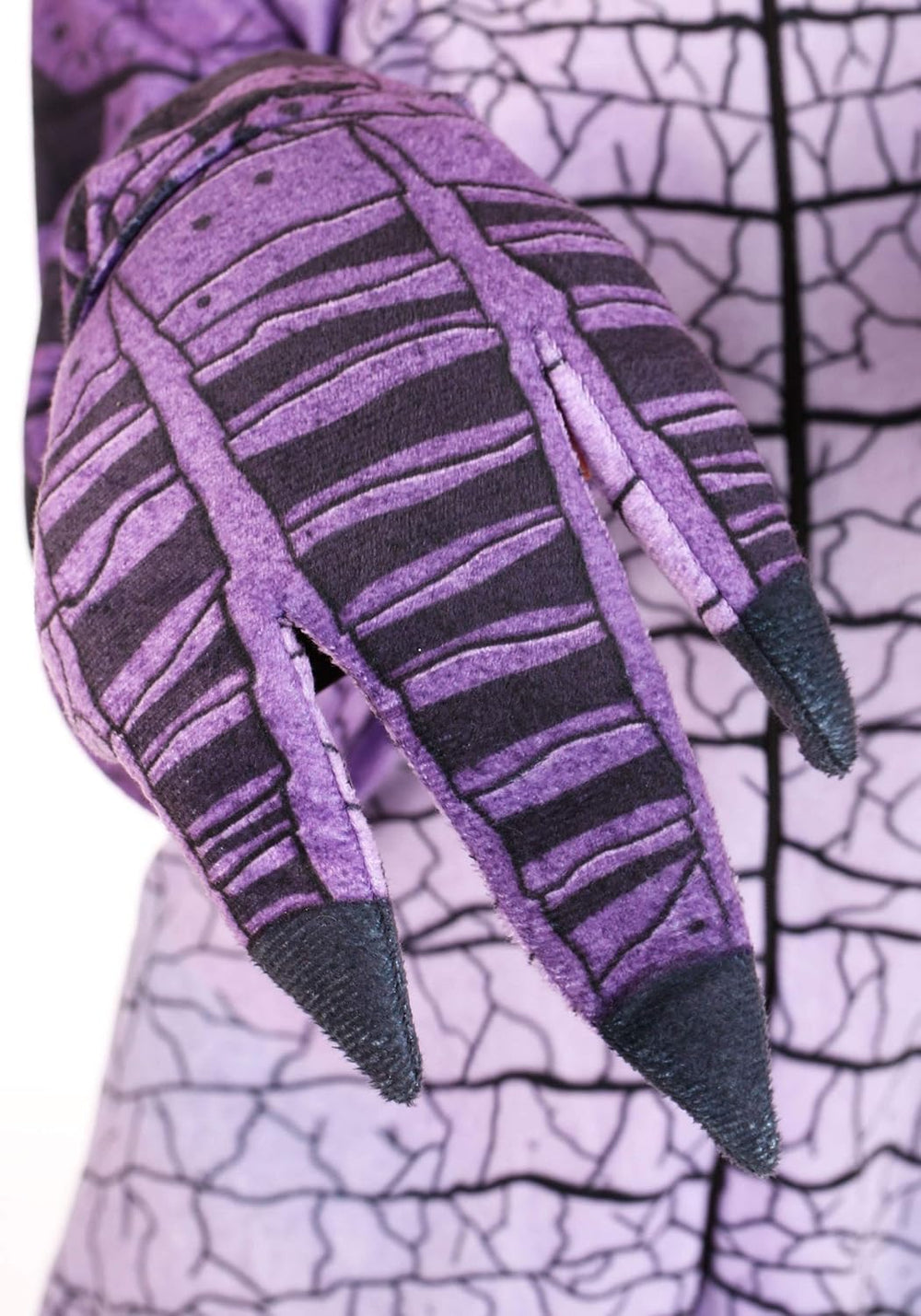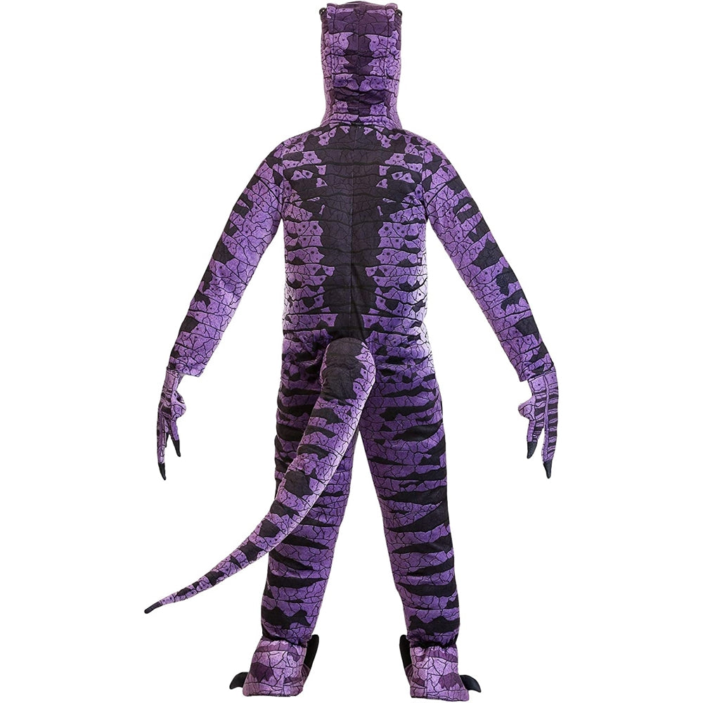 Tamaño :XS El disfraz incluye: este disfraz de dinosaurio raptor para niños cuenta con un mono de terciopelo con capucha de dinosaurio con garra de dinosaurio adju fundas de zapatos y cola. Cuenta con una cara de dinosaurio en la capucha con ojos de plástico y dientes de fiel así garras acolchadas de felpa y una cola de felpa. De divertidos disfraces: los disfraces de dinosaurio son siempre una opción popular para los niños en Hallow por lo que estamos seguros de crear este traje de dinosaurio raptor púrpura con especial cuidado y atención adicional al detalle. Estamos dedicados a la mejor experiencia de disf y estamos seguros de que tu hijo se sentirá pura alegría cuando pueda mostrar el estilo divertido y feroz de este disfraz. Detalles que importan: a tu hijo le encantará lucir un feroz dinosaurio carnívoro con este exclusivo disfraz de raptor estampado morado. Cuenta con un patrón de escala de impresión diseñado por artistas en el traje con rayas negras y patrones de color degradado. Junto con garras suaves y una cola de fe va a tener a tu pequeño listo para rugir