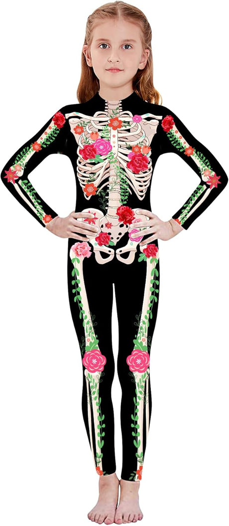 Disfraz Esqueleto Niñas RAISEVERN Jumpsuit 3D Talla 5-14 Años