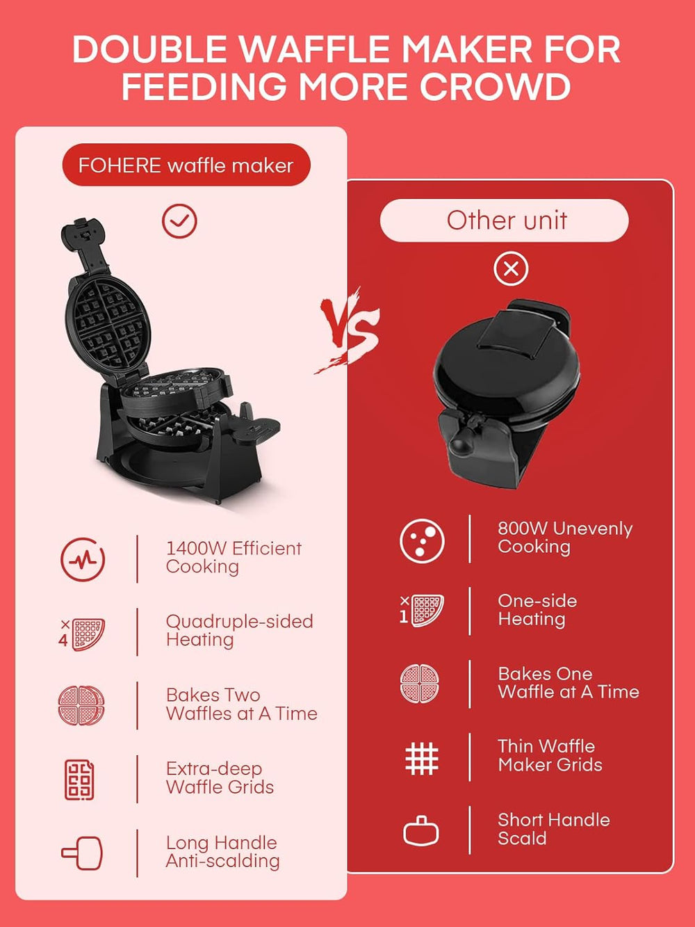Máquina de Waffles, 1400W, Placas Antiadherentes, Modelo 180°