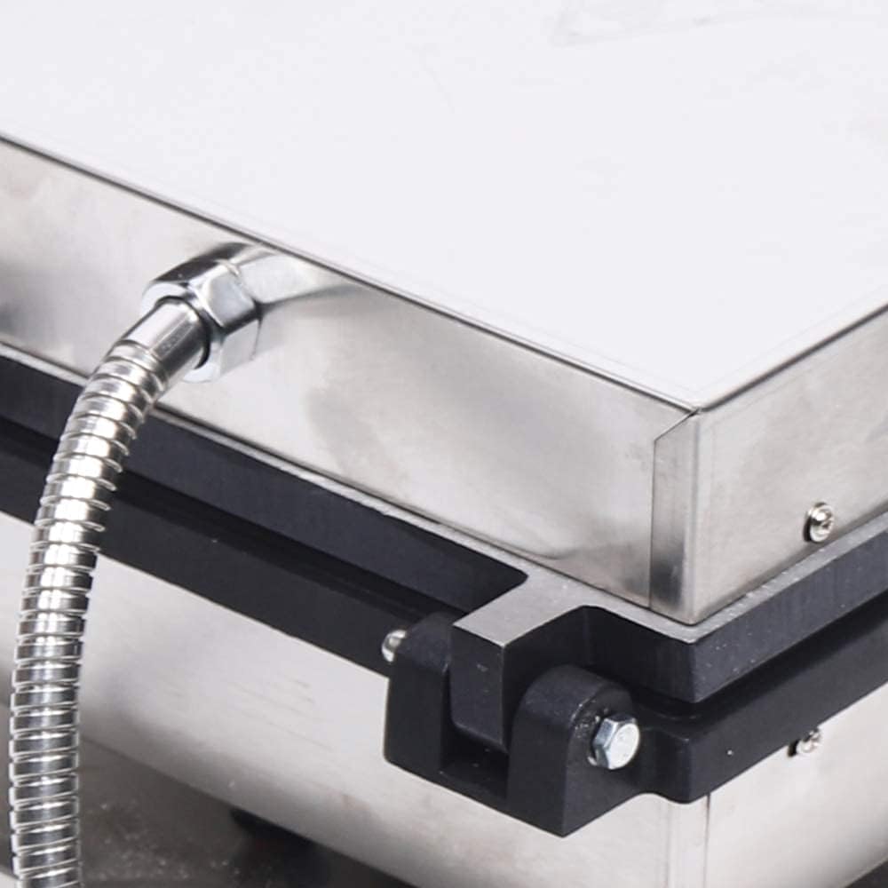 Descripción del producto ?Calidad Avanzada?- El área de calentamiento y control están separadas para eliminar lo s de quemaduras. Las juntas sólidas y suaves entre las dos sartenes brindan un uso seguro. Cuatro almohadillas de pie mantienen la máquina estable. ?Control de Tiempo y Temperatura?- Perilla de ajuste de tiempo y temperatura precisa con escala clara de 0~5 minutos y 50~300?. La luz LED indica el estado de calentamiento. Alarma clara y melodiosa cuando el waffle está li no es necesario esperar al lado de la máquina. ?Sartenes Antiadherentes?- Sartenes dobles para formar deliciosos waffles (4 piezas a la vez). El revestimiento antiadherente de teflón permite dar forma y mantener limpio el lugar sin tener que pasar mucho tiempo limpiando. ?Resistente y Duradero?- Cuerpo de acero inoxidable y ca fácil limpieza y resistente para un período de trabajo más largo; orden hermoso sin desorden. El nivel de seguridad también se mejora. Mango grueso con disipación de calor asegurada. ?Amplia Aplicación?- Waffles en forma cuadr suaves por dentro y crujientes por fuera con un sabor espec un sabor interminable y un aroma tentador. El chocol caramelos y otras decoraciones se pueden agregar libremente para dar sabor a los waffles calientes. Una gran elección para panader restauran quios edo etc.