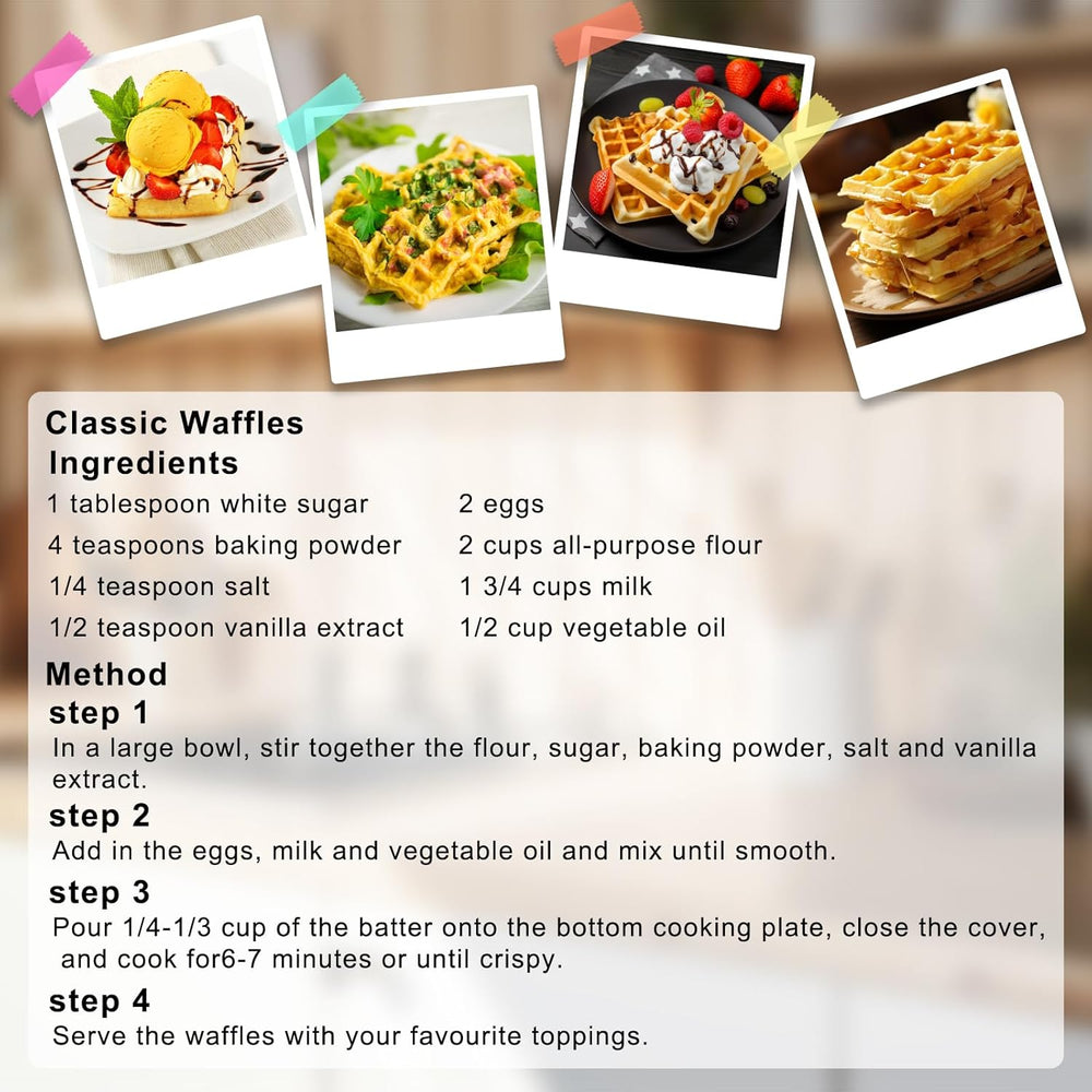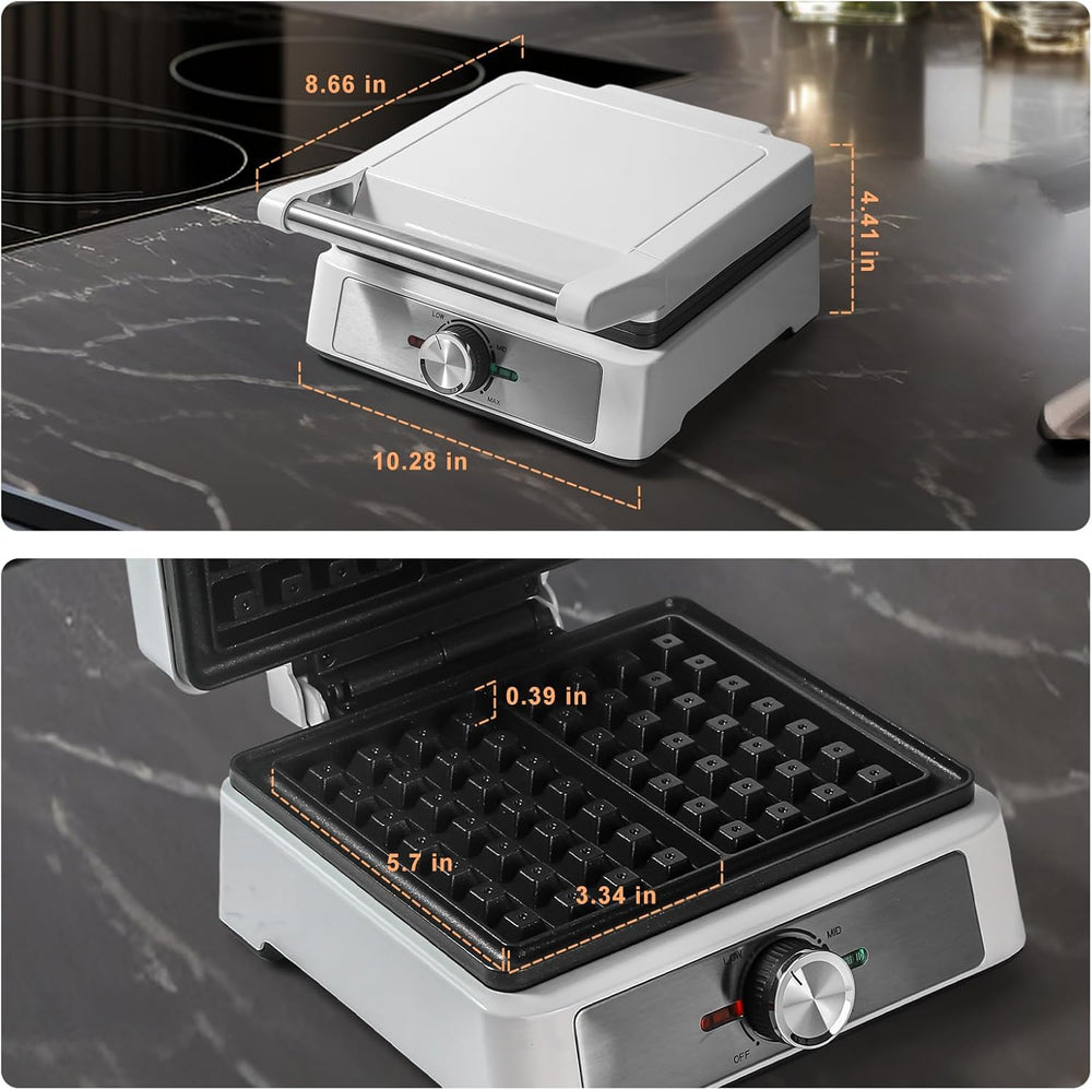 Máquina de Waffles 2 Rebanadas, Antidesbordamiento, 1200W