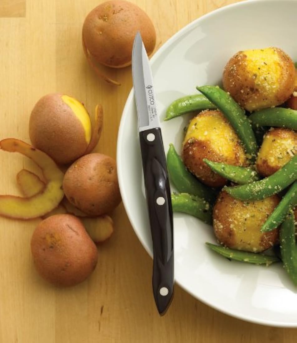 *** Características ***   .Construcción de espiga, Remaches triples - - alta calidad remaches de aleación de níquel-plata.Altamente diseñado termo-resina mango ergonómico no se agrieta, chip, decoloración o material absorbenteCUTCO Forever - - última intervensión de Afilar y de repuesto para siempre. número 1 de América Marca en calidad cubiertos para más de 50 años Fábrica en Estados Unidos por artesanos estadounidenses Medidas de la hoja 2 pulgadas. Podría decirse que El ms utilizado de la cuchilla en la cocina. Necesita un cuchillo de pelar que ser confiable y cmodo. cutco promete la nitidez, fuerza, equilibrio y odidad en sus productos.garantizado.