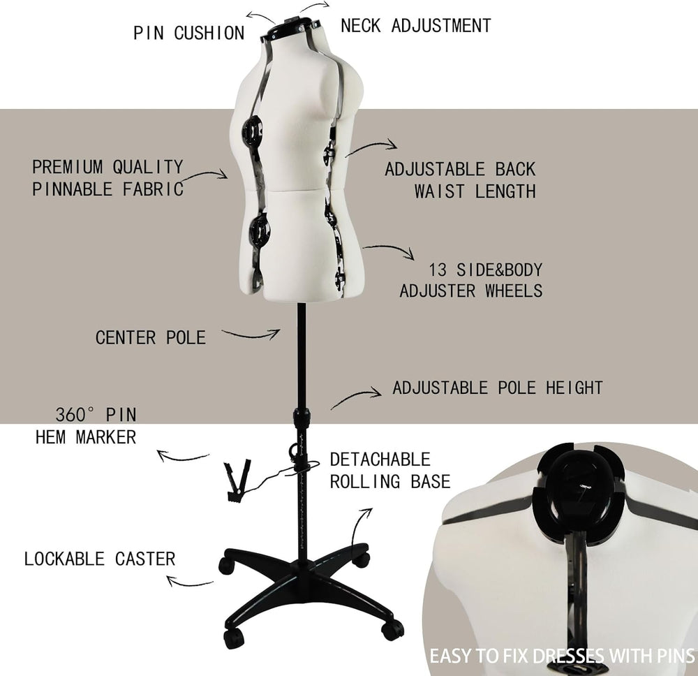 Maniquí ajustable para costura, tamaño 6-14, 13 diales, 42.5-60