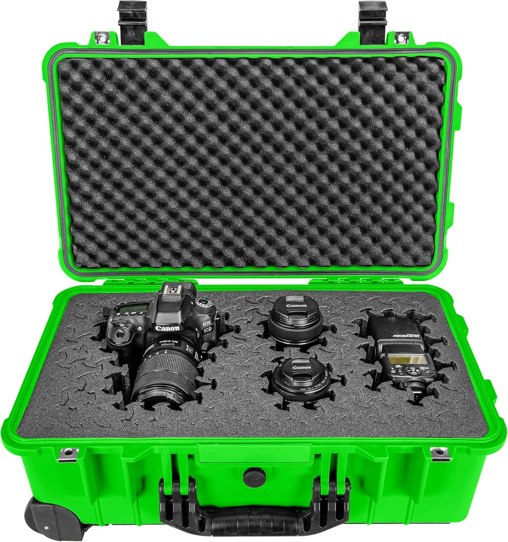 Descripción en español: Dimensiones externas de la caja: 22" x 13.81" x Dimensiones internas de la caja: 19.75" x 11" x 7 Peso: 14 libras. Acolchado de espuma RAGAR XP con dimensiones de 17.75" x 12.5". Incluye 135 piezas de espuma removibles y reutilizables. Protección impermeable IP67 para hasta 1 metro pletamente sumergido con revestimiento de junta de goma. Tamaño conveniente que cumple con los requisitos estándar de las aerolíneas para el almacenamiento en la cabina durante el vuelo. La caja viene equipada con ruedas sólidas integradas y mango extensible. Incluye 4 capas de espuma: 2 almohadillas de espuma reconfigurables y reutilizables RAGAR XP (polietileno reticula 1 capa de espuma inferior sólida y 1 capa de espuma de huevo. El acolchado de espuma RAGAR viene precortado y listo para personalizar directamente desde la caja. Retire y reconfigure fácilmente las piezas de espuma sin necesidad de herramien lo que le permite crear cavidades protectoras personalizadas adaptadas a su equipo específico. Ver más detalles del producto.
