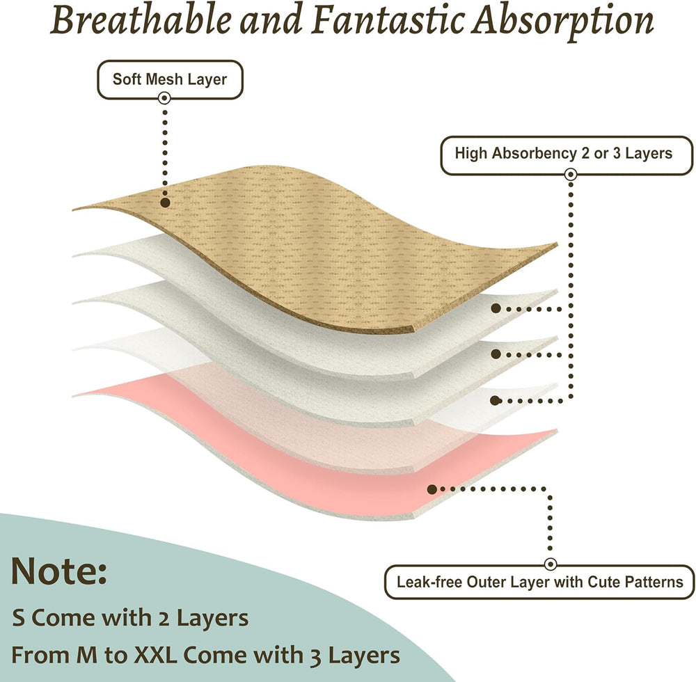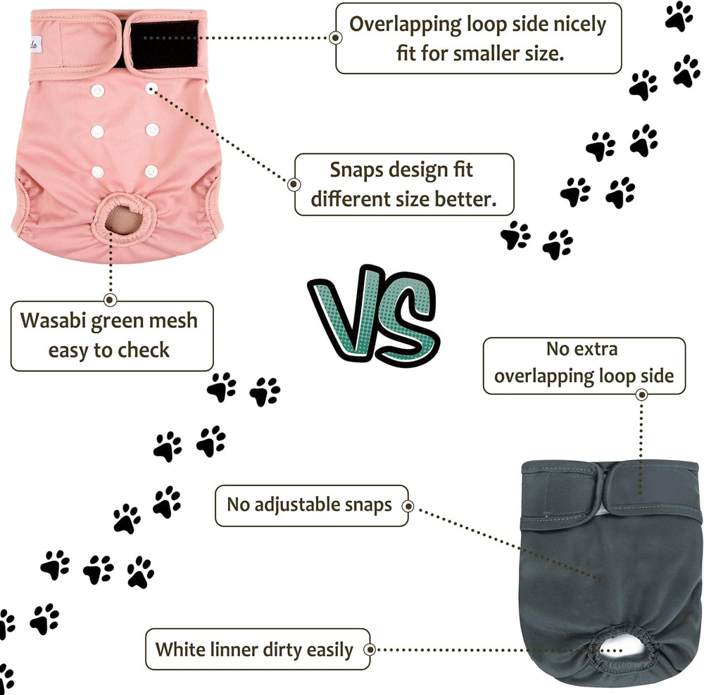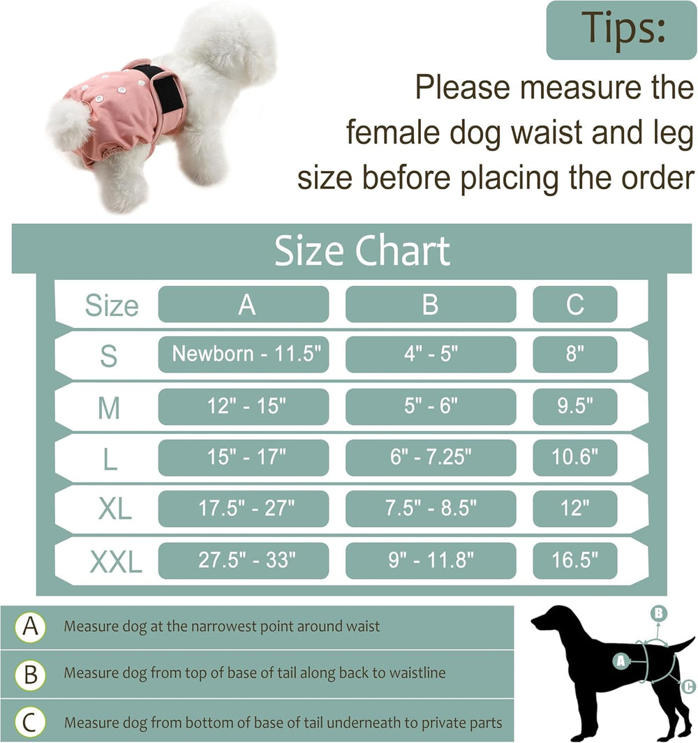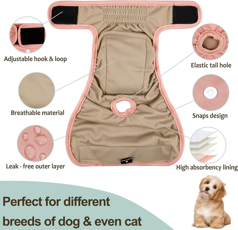 Sobre este artí Tamaño: nuestros pañales reutilizables para perros tienen cinco tamaños para adaptarse a diferentes razas de perros. Estos pañales lavables para perros son ideales para varias formas de cuerpo de perro. La cintura y las patas traseras de los perros deben medirse cuidadosamente antes de rar para que los pañales reutilizables para perros se adapten mejor a su perro. Estos pañales lavables para perros femeninos se r endan para mascotas mayo incontinencia de per mascotas con necesidades especiales y durante la noche. Alta absorción y sin fugas: diseñados pensando en la di estos pañales para perros tienen una almohadilla súper absorbente cosida para mantener el líquido en la almohadi tela de malla de ojo de pájaro contra la piel y una carcasa exterior PUL sin fugas y un cómodo agujero elástico en la cola para hacer que los pañales para perros sean totalmente libres de fugas. Gancho y bucle ajustables y broches - Los pañales lavables para perros femeninos que elijas deben adaptarse a la cintura de tu perro. El diseño superpuesto de gancho y bucle en el pañal para perro hace un gran ajuste. Los broches también funcionan bien para ajustar la longitud y el ancho de los pañales para cachorros. Lavable y reutilizable: los pañales reutilizables están bien hechos y lo mejor es que puedes lavarlos y reutilizarlos. Y dado que los pañales para perros están hechos con costuras precisas y telas de cali los pañales para perros hembras pueden soportar el lavado frecuente y el uso diario. No solo para perros hembras en celo: cachorros que aún son demasiado jóvenes para controlar su vejiga. Los perros mayores también pueden necesitar usar pañales para perros para evitar accidentes en la casa. Especialmente hembra en celo con los pañales para perros hembra lavables para ayudar a tu perro a pasar por este desafío con digni sin sentir que hicieron algo mal.