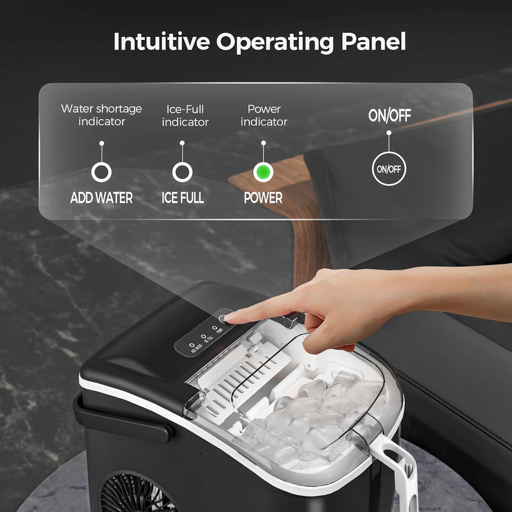 Máquina de Hielo Crzoe, 26Lbs/24H, 9 Cubos en 6 Min, Auto-Limpieza