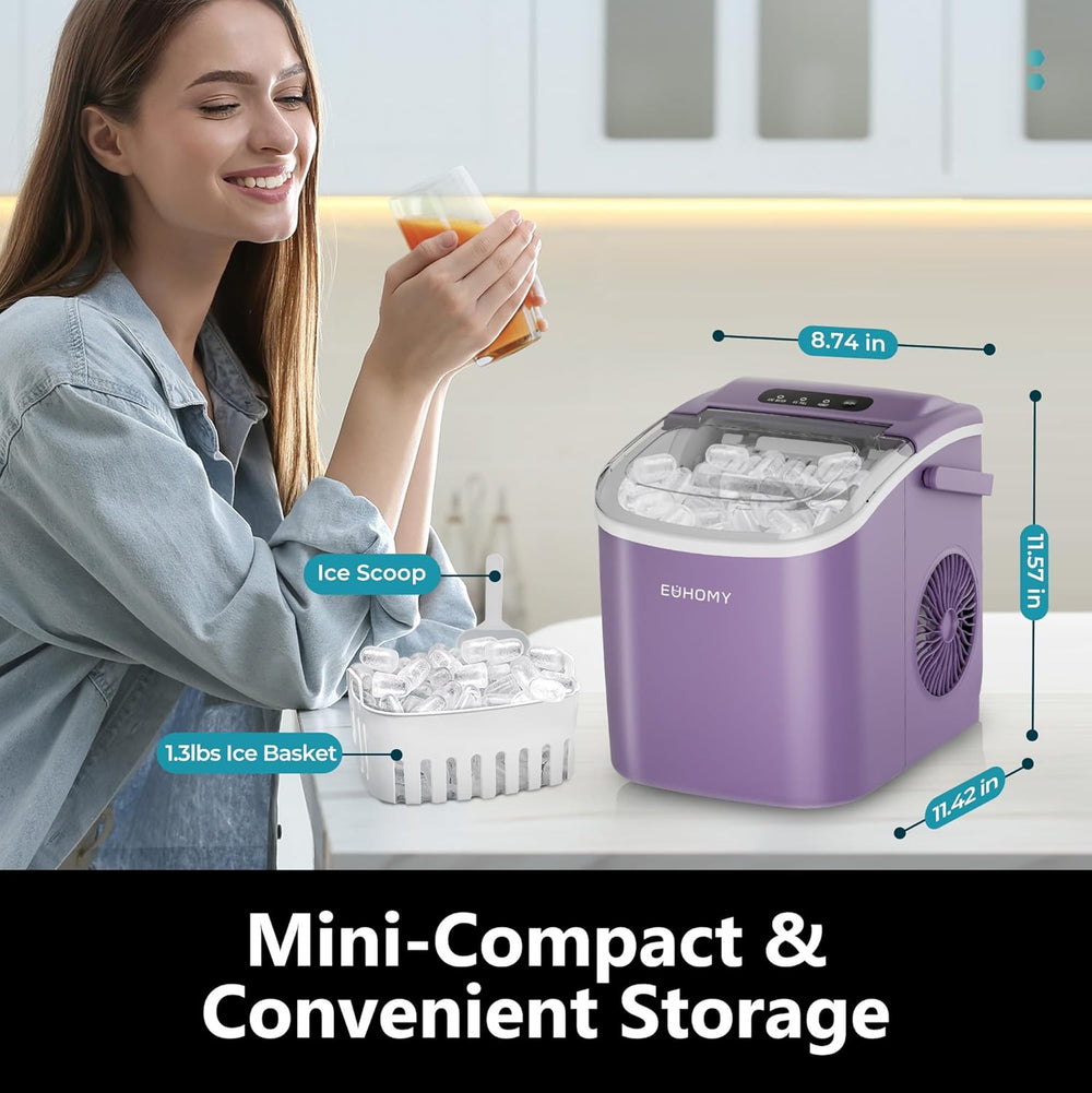 Máquina de Hielo EUHOMY 26lbs/día, 9 cubos en 6 mins, portátil