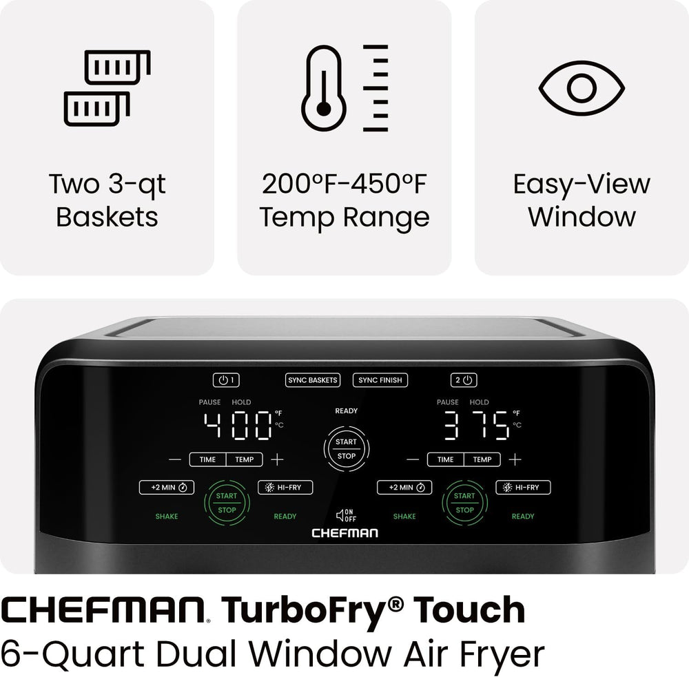 Freidora de aire de 6qt, CHEFMAN, 2 cestos, digital, doble está agotado y se enviará tan pronto como vuelva a estar disponible.