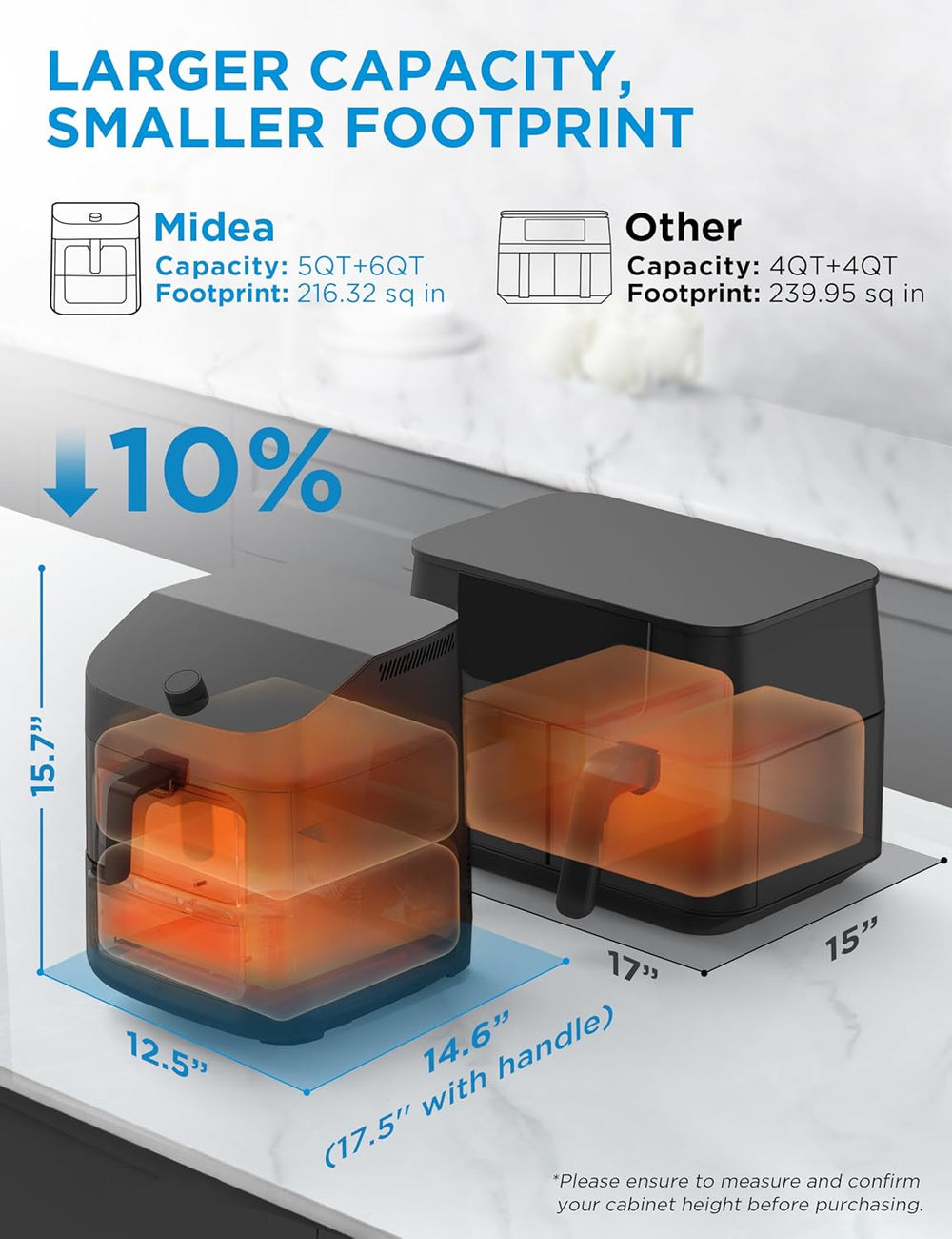 Freidora de aire Midea 11 QT, 8 en 1, Wi-Fi, Alexa, Recetas
