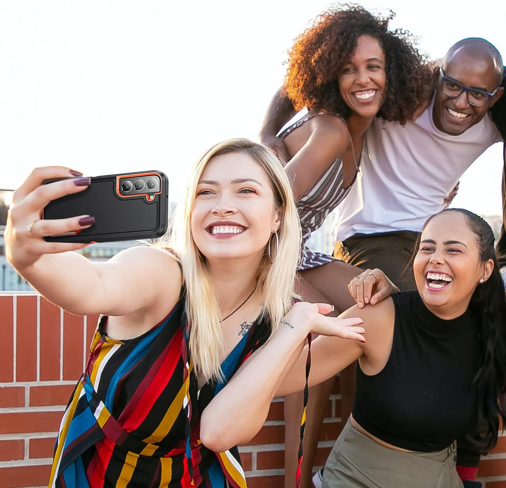 BaHaHoues Funda para Samsung Galaxy S22, Samsung S22, con soporte integrado, a prueba de golpes, polvo, caídas, grado militar, para Galaxy S22 5G de 6.1 pulgadas (negro/naranja)