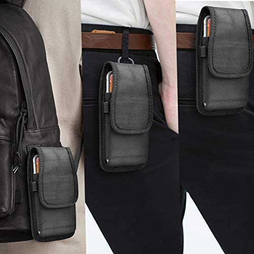 Takfox Funda de nailon para iPhone 13 Pro Max 12 11 XR XS 8 7 Samsung Galaxy S22 Ultra S21+ S20 FE S9 Note 20 10 9 A03S A12 A13 A32 A42 A52 A51 A71 Funda de clip de cinturón de nailon para teléfono