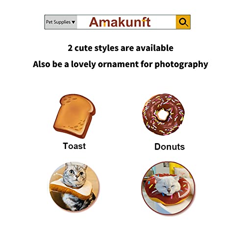Amakunft - Collar ajustable para gato para recuperación de una cirugía, lindo cono protector para curación de heridas, en forma de tostada, estilo isabelino, con borde suave