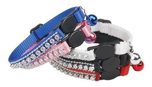 Collar para gato de nylon con pedrería 3/8 de pulgada, azul